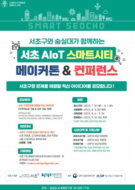 숭실대 AI융합연구원과 함께하는 이번 메이커톤은 서초구와 숭실대의 ‘지역지능화 혁신인재 양성 사업’의 일환으로 AI기술 저변 확대를 위해 진행된다.
