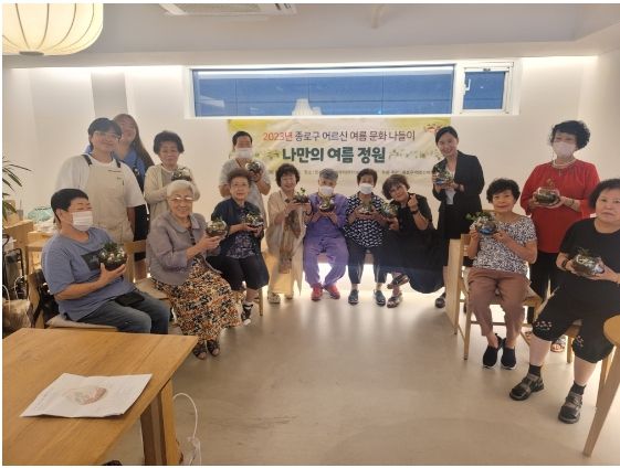 이날 행사는 지역 홀몸 어르신의 즐거운 여름나기를 위해 기획됐다. 도심에 거주하는 구민 특성상 실내에서 자연을 가까이하며 힐링할 수 있도록 ‘테라리움 화분’을 만들고 전통차를 시음하는 시간으로 알차게 구성해 호응을 얻었다.