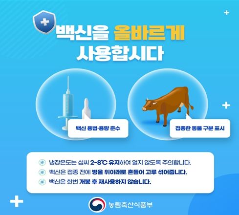 구제역 백신 접종요령 등 가축전염병 방역 관리요령은 농림축산식품부 가축질병특별페이지(홍보자료)에서 확인할 수 있다.