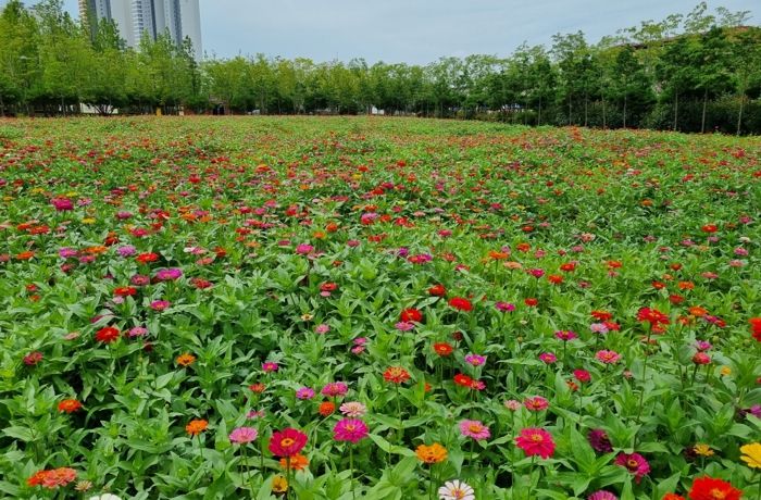 [제주교통복지신문 김강석 기자] 군산시 금암동 도시재생숲 유휴부지 6,000㎡에 여름을 대표하는 꽃 백일홍이 활짝 폈다.