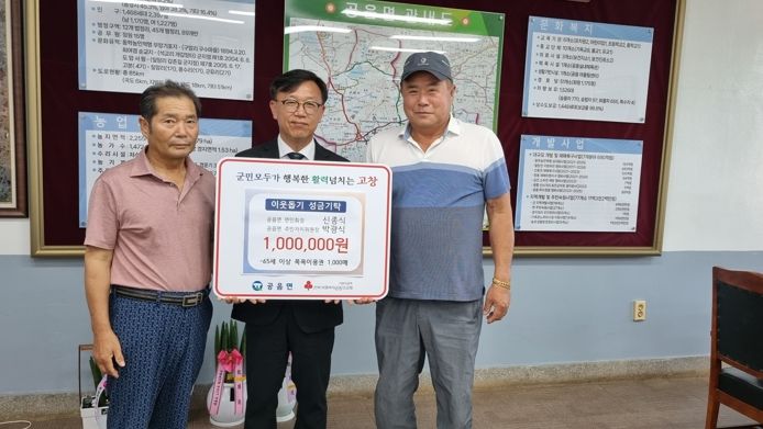 [제주교통복지신문 김강석 기자] 고창군 공음면 신종식 면민회장과 박광식 주민자치위원장이 관내 어르신들을 위해 작은목욕탕 입욕권 1000매(100만원 상당)를 기탁했다.