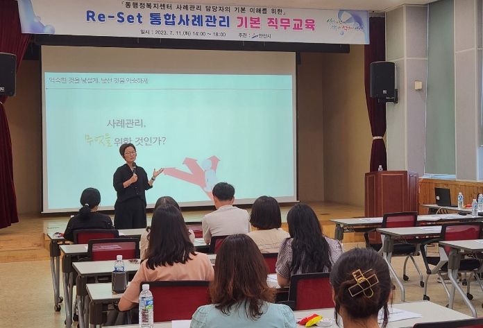 [제주교통복지신문 김강석 기자] 안산시는 지난 11일 일선에서 근무하고 있는 25개 동행정복지센터 통합사례관리 담당 공무원 50여 명을 대상으로‘Re-Set 사례관리 기본 직무교육’을 실시했다고 12일 밝혔다.