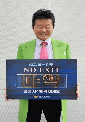 [제주교통복지신문 김강석 기자] 트로트 가수 태진아는 대전동부경찰서가 추진하는 마약 없는 대전 만들기 ‘NO EXIT’ 릴레이 캠페인에 동참했다.
