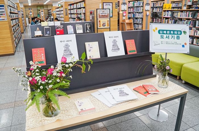 지난 11일(화) 오후 3시, 김해문화재단 관광사업본부 곽다솜 과장(36), 경영기획본부 안소정 과장(34)은 경상남도교육청 소속 김해도서관을 방문해 직접 출판한 도서 3종 20여권을 기부했다.