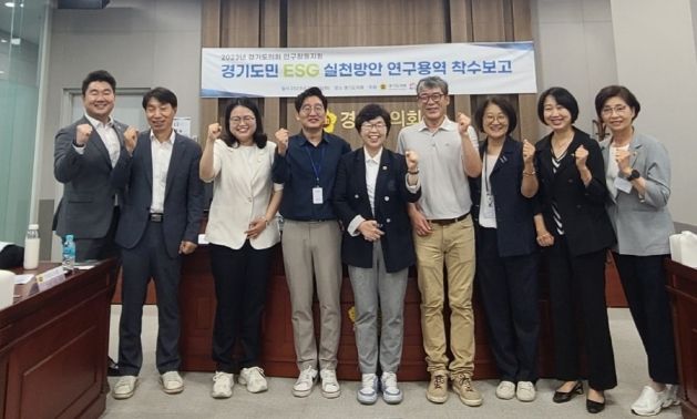 이날 착수보고회에는 경기도의회 장한별 부회장·김미숙·신미숙·이병숙·이자형·이홍근 의원이 참석했으며, 연구용역 수행기관인 (재)지속가능경영재단 ESG경영센터의 김영열 선임연구원, 지기환 경영지원본부장이 참석했다.