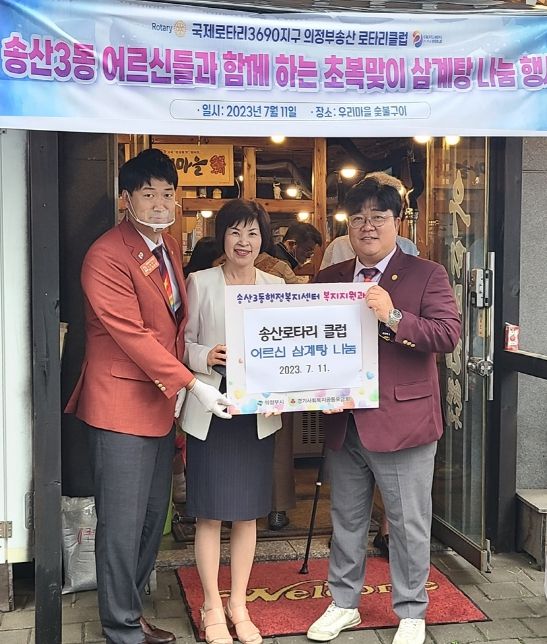 [제주교통복지신문 김강석 기자] 의정부시 송산3동행정복지센터는 무더위가 시작되는 초복을 맞아 7월 11일 송산로타리 클럽이 독거노인 등 관내 어르신들을 모시고 삼계탕 나눔 행사를 진행했다고 밝혔다.