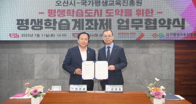 [제주교통복지신문 김강석 기자] 오산시와 국가평생교육진흥원은 지난 11일 시청 상황실에서 평생학습도시 차원의 평생학습계좌제 운영 기반 마련을 위한 양 기관의 상호협력을 위해 업무협약을 체결했다.