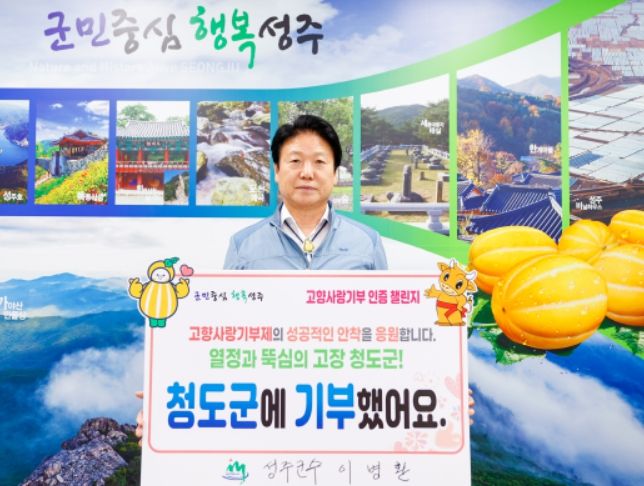 [제주교통복지신문 김강석 기자] 이병환 성주군수는 11일 고향사랑기부제의 성공적인 정착 및 자발적 기부문화 확산을 위하여 고향사랑기부 인증 챌린지에 동참했다.