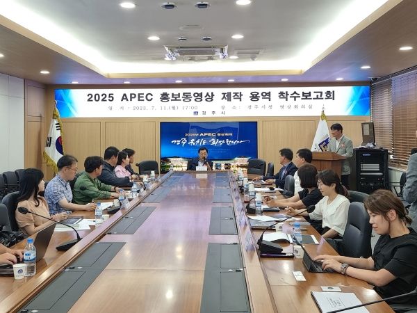 시는 지난 11일 시청 영상회의실에서 주낙영 시장 및 관련 부서장들이 참석한 가운데 2025 APEC 정상회의 경주 유치를 위한 ‘홍보영상 제작 착수보고회’를 열고 제작 방향과 기획안에 대한 논의를 가졌다.