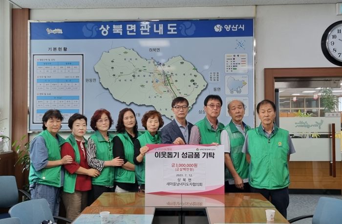 김진일 상북면장은 “무더위와 폭우로 어려움을 겪고 있는 이웃들을 위해 소중한 성금을 기탁해주셔서 매우 감사드린다”며 “꼭 필요한 분들에게 전달할 수 있도록 최선을 다하겠다”고 밝혔다.