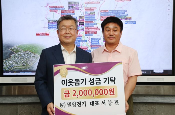 이번 성금은 기탁자의 뜻에 따라 밀양시에 거주하는 저소득 20세대에 전달될 예정이다.