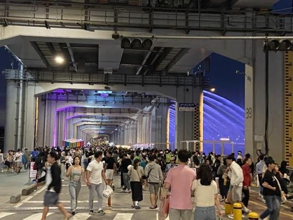 또한 잠수교의 명물인 ‘달빛 무지개 분수’도 관광객들의 눈길을 사로잡았다. 한강과 야경, 물줄기가 아름답게 조화를 이루며 장관을 이루자 방문객들은 저마다 휴대전화로 사진을 찍으며 아름다운 풍광을 간직했다.