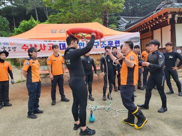 주요 내용은 ▲수난사고 실종자(고립) 수색 ▲익수자 응급처치 ▲수난장비 숙달 ▲팀 단위 수중 인명구조기술 ▲비상상황 시 응급대처법 등 실제 수난 구조상황 가상 훈련 등을 실시했다.