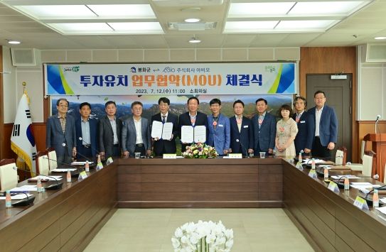 [제주교통복지신문 김강석 기자] 봉화군과 ㈜아비오는 12일 봉화군청 소회의실에서 봉화군의 지역 발전을 위한 투자협업과 친환경 원재료를 이용한 탄소화장품 생산을 위해 300억 규모의 투자유치 업무협력 협약식을 개최했다.