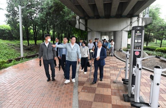 [제주교통복지신문 김강석 기자] 강수현 양주시장은 12일 동두천시 송내동 지하철 하부공간에 조성된 산책로를 둘러봤다.