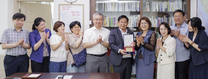 이날 구를 찾은 유치원장은 삼성그린유치원장 등 9명으로 박강수 구청장과 복지동행국장, 교육정책과장 등이 함께 자리해 인사를 나눴다.