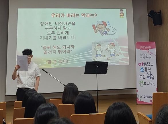 [제주교통복지신문 김강석 기자] 경상북도김천교육지원청 특수교육지원센터 통합교육지원단에서는 학교급별 특성을 고려한‘찾아가는 장애이해교실’운영을 통해 장애공감문화 확산 및 통합교육 환경 조성을 강화하고 있다.