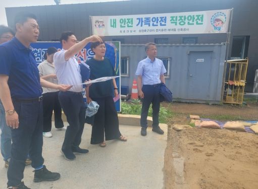 이날 현장에서는 공사 진행 상황을 보고받은 뒤 집중호우 대비태세를 점검했다. 호우로 인한 산사태 위험은 없는지, 작업 중이던 시설이 강풍에 떨어져나갈 위험은 없는지 시설물 관리 실태를 살피고 작업자들에게 사전대비를 꼼꼼히 하여 줄 것을 당부했다.