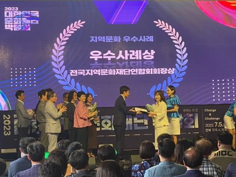 [제주교통복지신문 김강석 기자] (재)부산진문화재단은 지난 7월 5일부터 7일까지 전주 팔복예술공장에서 개최된 2023 대한민국 문화재단 박람회에서 ‘문화협치 부문 우수사례’에 선정되어 전국지역문화재단 연합회장상을 수상했다.