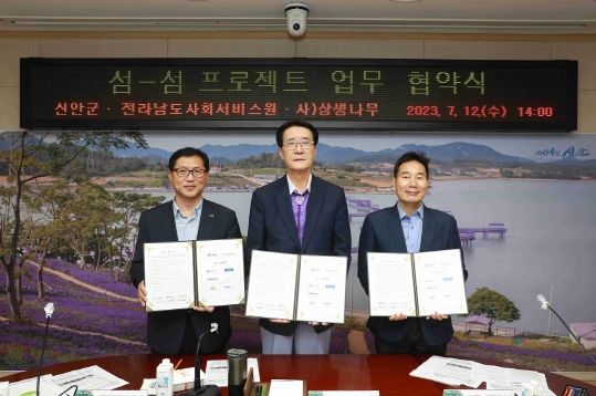 [제주교통복지신문 김강석 기자] 신안군은 12일 도서지역 맞춤형 사회서비스 제공을 위한 ‘섬-섬(Service Union Model) 프로젝트’의 원활한 추진을 위해 전라남도사회서비스원, 사단법인 상생나무과 업무협약을 체결했다고 전했다.