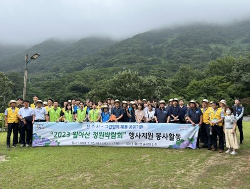 [제주교통복지신문 김강석 기자] 진주시는 지난 12일 진성면 월아산 숲속의 진주에서 그린협약을 체결한 혁신도시 이전 공공기관 직원 80명과 ‘2023 월아산 정원박람회’행사지원 봉사활동을 실시했다.