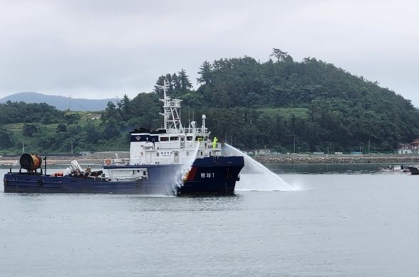 훈련은 ▲적조 예찰에 따른 주의보 발령 ▲양식어업인, 유관기관 문자발송 ▲입체적 분말황토 살포 ▲선박을 이용한 수류 방제작업 ▲해상가두리 시설 안전해역 이동 조치 등으로 진행됐다.