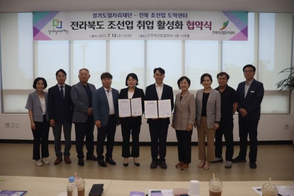 [제주교통복지신문 김강석 기자] 전북조선업도약센터는 경기도일자리재단과 업무협약을 통해 전북지역 조선업 취업 지원에 대한 협력에 나선다고 12일 밝혔다.