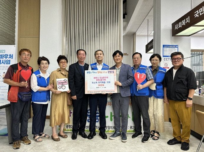 박세용 광명2동 지역사회보장협의체 위원장은 “지역주민들을 위해 훈훈한 사랑을 실천해 온 광명시 호남향우회 광명2동지회에 진심으로 감사드린다”며 “전달해준 후원금은 지역 내 어려운 가구를 위해 지원하도록 하겠다”고 밝혔다.