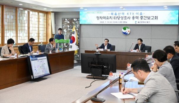 [제주교통복지신문 김강석 기자] 울산 북구는 12일 구청 상황실에서 북울산역 KTX-이음 정차역 유치 타당성조사 용역 중간보고회를 열었다.