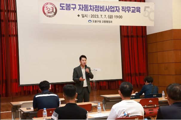 [제주교통복지신문 김강석 기자] 도봉구는 지난 7월 7일 도봉구청 자운봉홀에서 관내 자동차정비사업자를 대상으로 구민 서비스 의식 고취 및 사업장 운영 수준 향상을 위한 ‘자동차정비사업자 직무교육’를 실시했다.