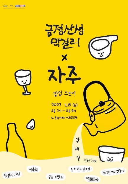[제주교통복지신문 김강석 기자] 부산 금정구에서는 청년들이 뭉친 문화기획팀 자주와 함께 오는 15일 문화 카페 MERGE에서‘금정산성막걸리x자주 팝업스토어’를 선보인다.