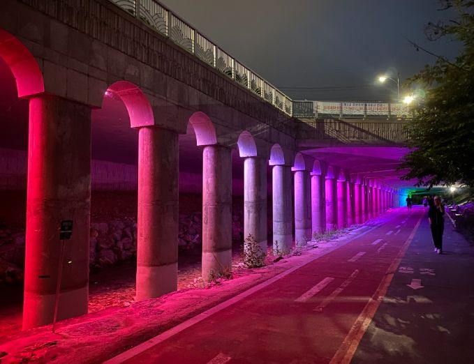 조명이 설치된 신봉2교는 정평천 산책로의 교량 구간 중 길이가 가장 긴 곳이다. 하천과 산책로가 복개(뚜껑이 덮여 있음) 구간에 길게 이어져 있어 어두운데다 안전사고 위험이 크다며 조명 설치를 원하는 주민들이 많았다.