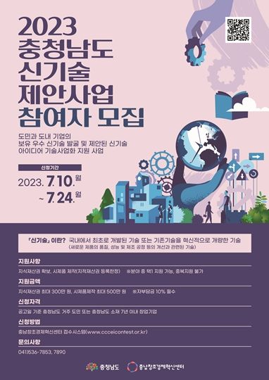 [제주교통복지신문 김강석 기자] 충남도는 오는 24일까지 도민과 도내 기업이 보유한 신기술 아이디어를 상용화할 수 있도록 지원하는 ‘신기술 제안공모 사업’ 참가자를 모집한다고 13일 밝혔다.