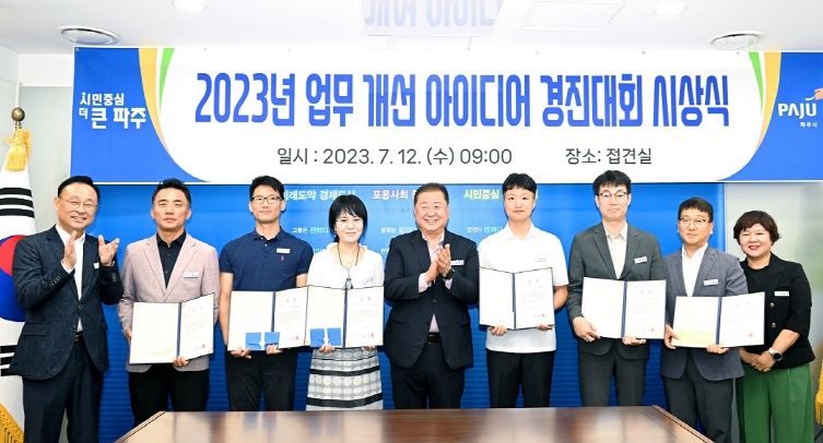 [제주교통복지신문 김강석 기자] 파주시는 행정 업무의 불편 사항을 개선하기 위해 ‘업무개선 아이디어 경진대회’를 실시하고 12일 우수제안 7팀에 시상식을 진행했다.