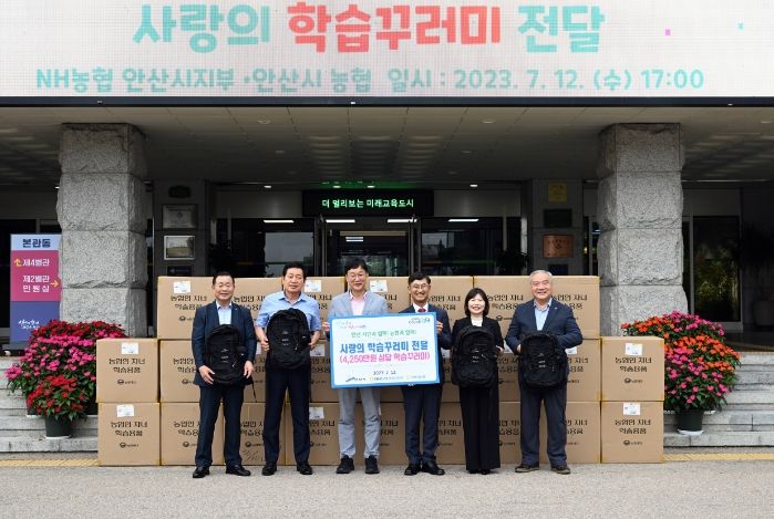 [제주교통복지신문 김강석 기자] 안산시는 지난 12일 NH농협 안산시지부로부터 관내 저소득층 어린이를 위한 사랑의 학습꾸러미(책가방, 보조가방, 필통) 250세트(4,250만 원 상당)를 기탁 받았다고 13일 밝혔다.