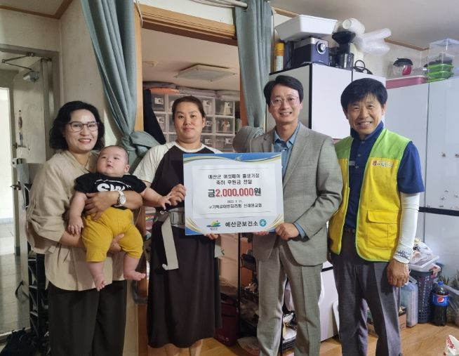 [제주교통복지신문 김강석 기자] 예산군보건소는 지난 2월 여섯째 아이를 출산한 예산읍 40대 최윤아(母), 최재윤(父) 부부에게 관내 여러 민간 단체의 축하 지원을 연계 추진하고 있다고 밝혔다.