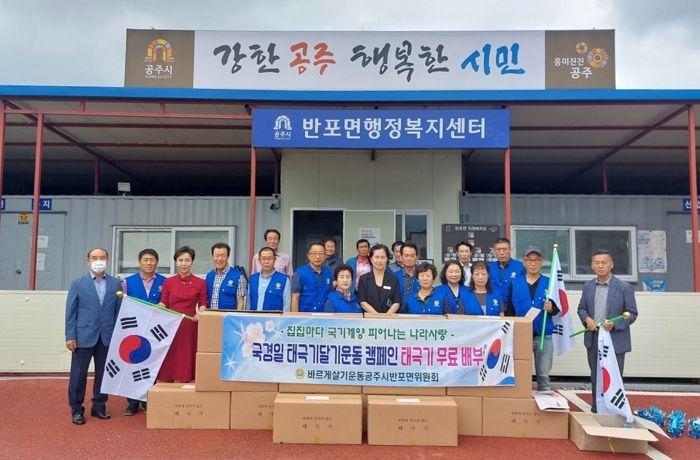 [제주교통복지신문 김강석 기자] 공주시 반포면은 지난 12일 제75주년 제헌절을 앞두고 바르게살기운동 반포면위원회에서 ‘나라사랑 태극기 나눔’ 행사를 실시했다고 밝혔다.