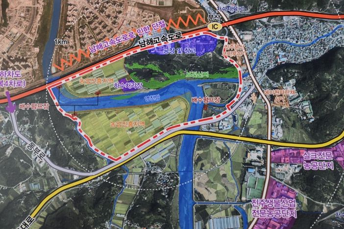 특히 진주 문산 공공주택지구와 진주역(KTX, SRT), 진주여객자동차터미널을 연결하는 교통망 확충으로 광역철도역과 터미널까지 10분대 접근이 가능한 서부경남 광역교통의 요충지로 새롭게 정비하고, 지구 내 영천강을 생태하천으로 만들어 충분한 휴식공간을 제공한다는 계획이다.