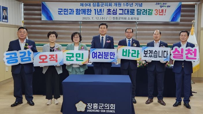 왕윤채 의장은 “제9대 장흥군의회는 개원 1주년의 의미를 되짚어 보며 개원 첫날 의원 전체가 다짐한 것처럼 그 다짐 그대로 앞으로의 3년을 군민만 보고 달려가겠다”라고 말했다.