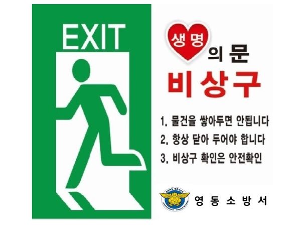 [제주교통복지신문 김강석 기자] 영동소방서는 화재로 인한 인명피해를 최소화하기 위해 비상구 폐쇄 등 불법행위 신고포상제를 연중 운영한다고 13일 밝혔다.