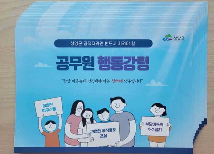[제주교통복지신문 김강석 기자] 청양군이 산하 공직자들에게 공정한 업무처리 기준을 제시하고 건전한 공직 풍토를 조성하기 위한 ‘청양군 공무원 행동강령’ 소책자를 제작해 배포했다.
