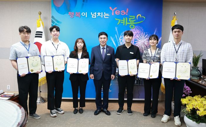 [제주교통복지신문 김강석 기자] 계룡시는 신속한 민원처리로 시민만족도 제고에 기여한 공무원 6명을 ‘민원처리 마일리지’ 우수공무원으로 선발해 시상했다고 밝혔다.