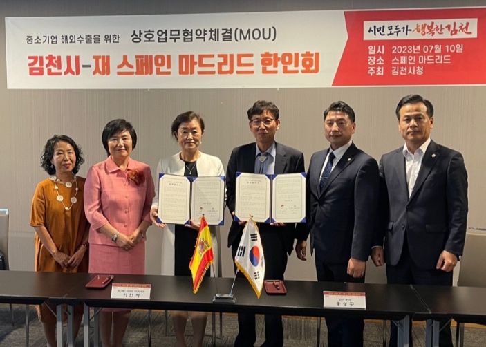 수출상담회 개최에 앞서 스페인 마드리드 한인회와 업무협약(MOU)을 체결한 김천시는, 세계화 시대 마드리드 한인회와 다양한 우호 증진을 바탕으로 향후 스페인 시장을 넘어 유럽권 新 시장 개척을 위해 상호 협력하기로 협의했다.