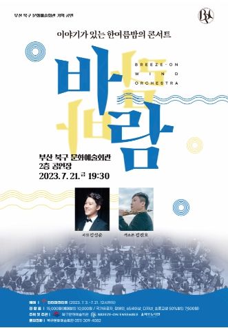 [제주교통복지신문 김강석 기자] 부산 북구문화예술회관은 2023년 7월 21일 금요일 저녁 7시 30분 윈드오케스트라 공연 '바람wind, 바람wish'이란 이름의 한여름 밤의 콘서트를 개최한다고 밝혔다.
