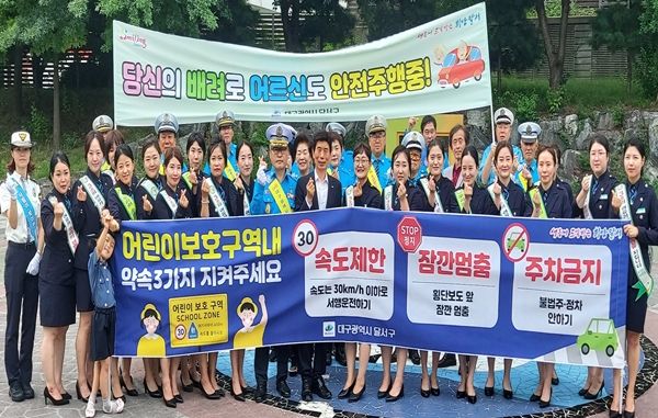 달서구는 이날 달서녹색어머니회, 달서모범운전자회 등 교통안전봉사단체와 달서경찰서, 구 직원 등 40여 명이 참여한 민‧관 합동 캠페인 활동을 전개했다.