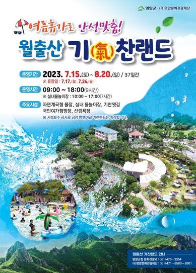 영암군 관계자는 “월출산 자락에서 관광객이 시원한 물놀이를 안전하게 즐길 수 있도록 시설 점검, 환경 정비 등 손님맞이에 최선을 다하고 있다”고 밝혔다.