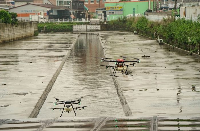 시는 지난 12일 시작한 드론 방역은 오는 8월말까지 남해빗물펌프장 인근에 위치한 남해유수지와 입암천 일대에서 진행된다고 밝혔다.