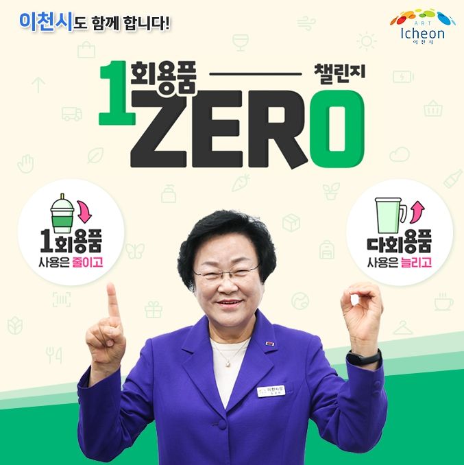 한편, 이천시는 급증하는 1회용품 사용을 줄이기 위해 부서별로 ‘1회용품 줄이기 나부터 시작입니다’릴레이, ‘1회용품 제로(10일)의 날에 청사 내 1회용 컵 반입금지’ 등을 추진하고 있으며, 청사 내에 텀블러 살균세척기를 설치하여 다회용 컵 사용을 보다 활성화될 수 있도록 하고 있다.