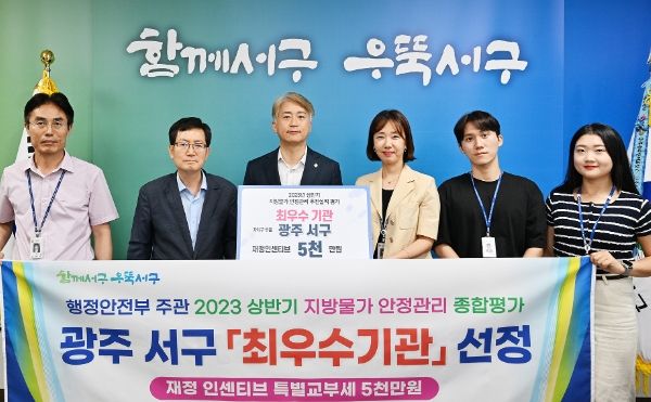 [제주교통복지신문 김강석 기자] 광주광역시 서구가 행정안전부 주관‘전국 지방물가 안정관리 실적평가’에서 2년 연속 최우수 지자체로 선정됐다. 서구는 광주 5개 자치구 중 유일하게 2회 연속 최우수기관에 선정되어 인센티브 5000만원을 받게 됐다고 13일 밝혔다.