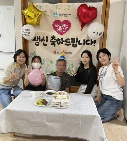 [제주교통복지신문 김강석 기자] 부산남구보건소 치매안심센터에서는 지난 10일 치매전문봉사단(동치미:동명대, 치매안심센터, 아름다운 시작(美))과 치매안심센터 사례관리전담팀이 함께 맞춤형 사례관리 대상자 중 생일을 맞이하신 김모 어르신 가정을 깜작 방문하여 생일선물과 축하노래, 생일상을 차려 드렸다.